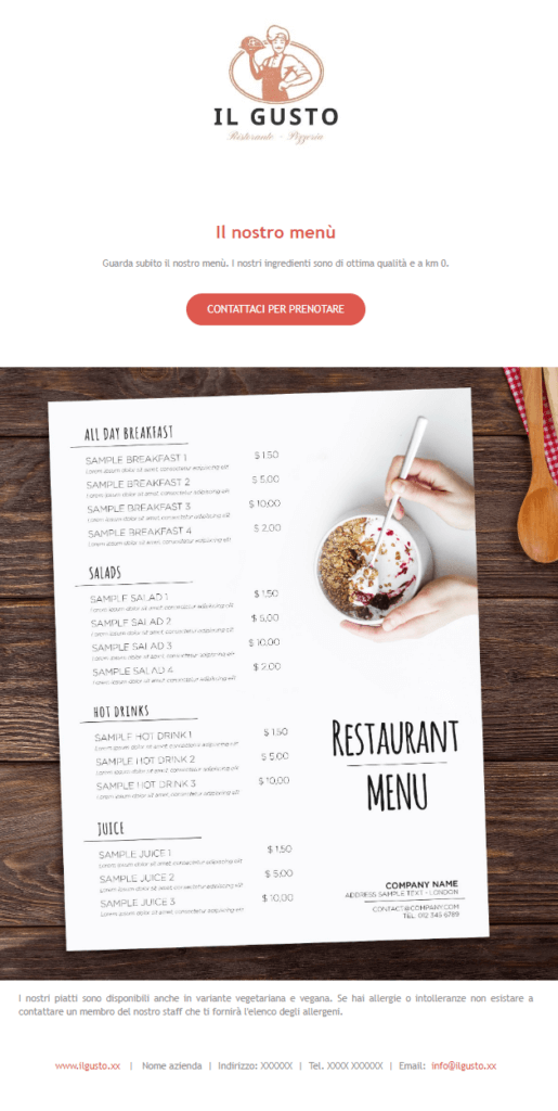 Infine, altri esempi di landing page che possono usare pizzerei, ristoranti e bar è quello per la promozione di eventi: da San Valentino alla festa della mamma, da serata a tema ai classici pranzi di Pasqua e Natale.